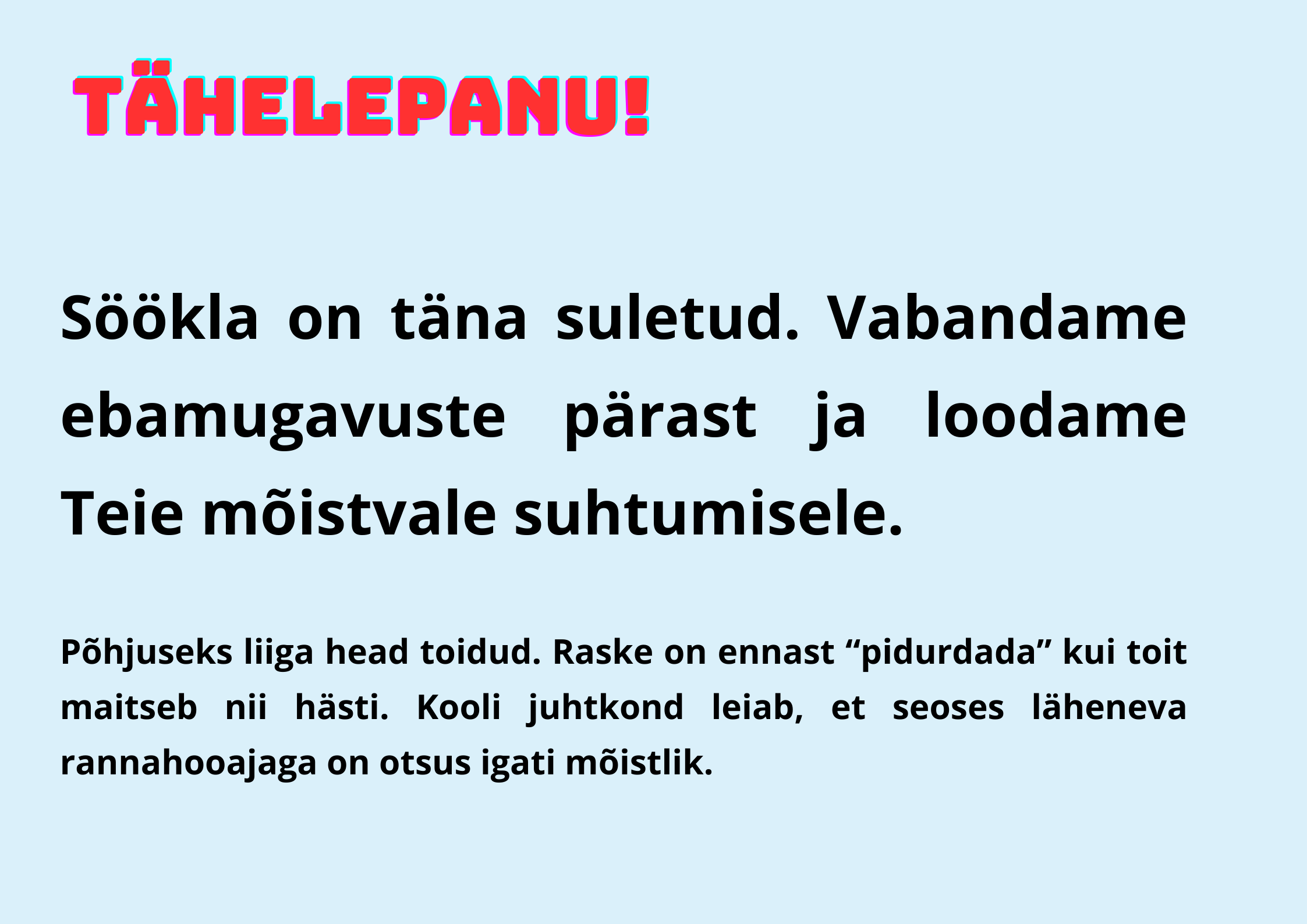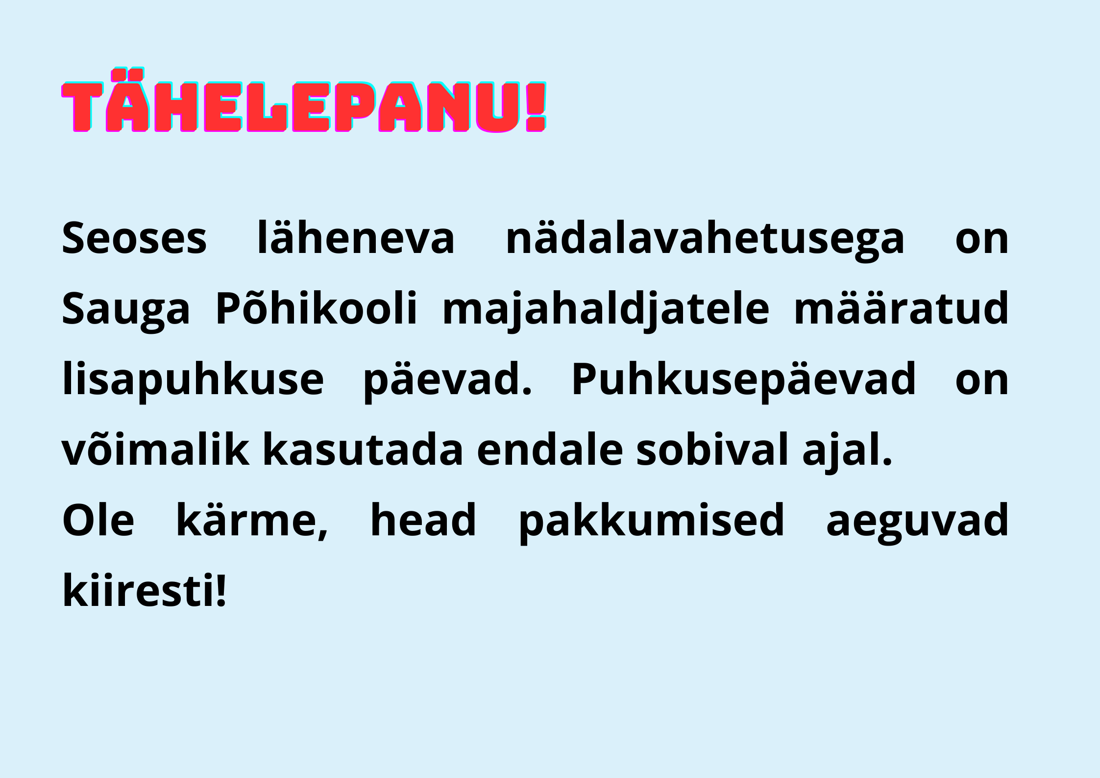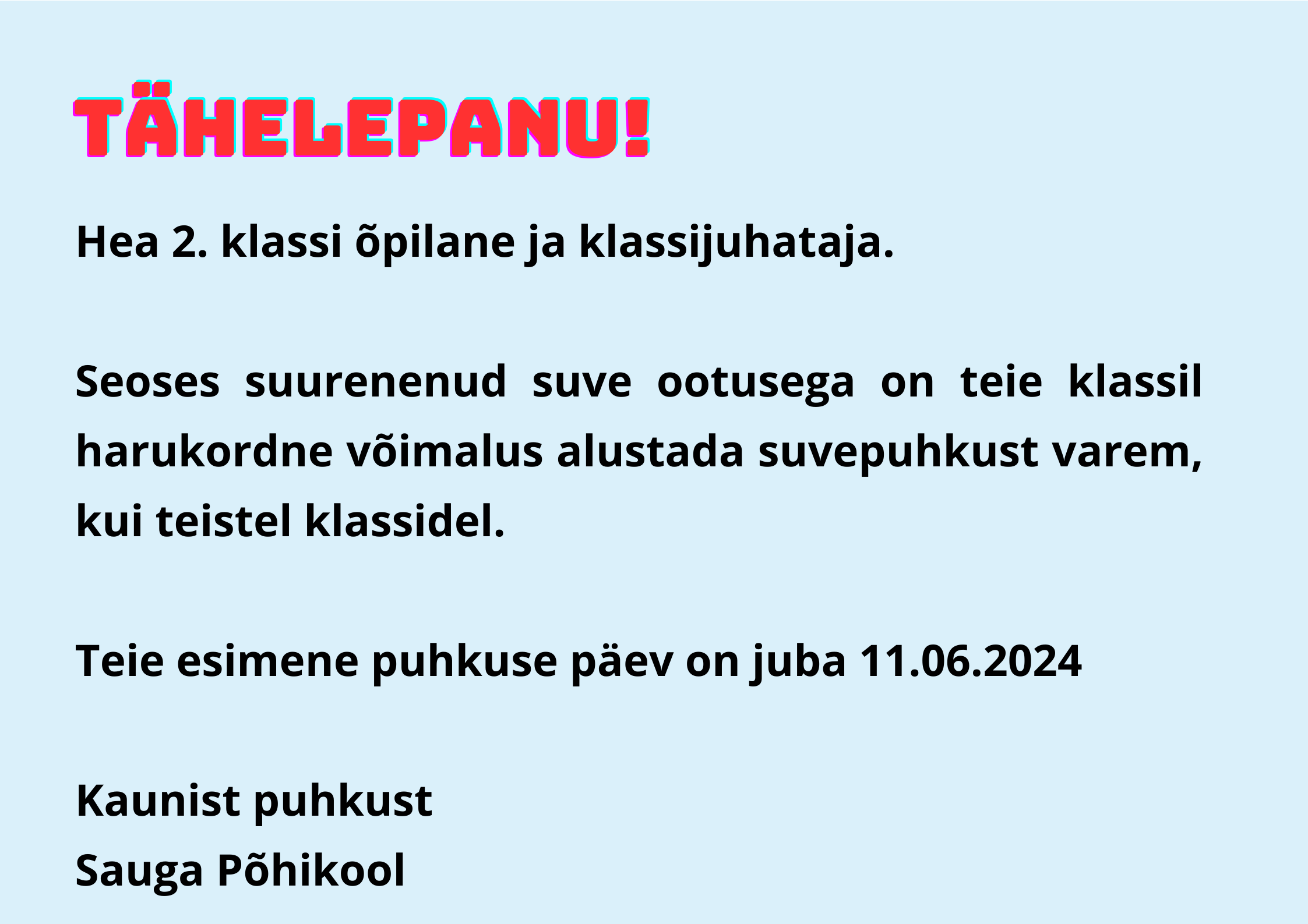 1.aprill on naljapäev ja ka Sauga kool tähistas seda aprillipäeva lõbusalt. Koolikotti ega käekotti polnud täna vaja kaasa võtta, võis tulla millega iganes. Niisiis polnud imestada, kui koolimaja peal ühtäkki ostukäru vastu sõitis või õpilane prügikast kaenlas trepist ülesse vantsis ja isa tööriista kohver oli ka hea lahendus. Lisaks ilutsesid koolimaja seintel lõbusad Juku anekdoodid ja segadust tekitavad teated. Päeva pärl oli aga EuroSaugaSPTeenuste parkimiskorralduse teade, mis nii mõnegi õpetaja algul kukalt kratsima pani ;)