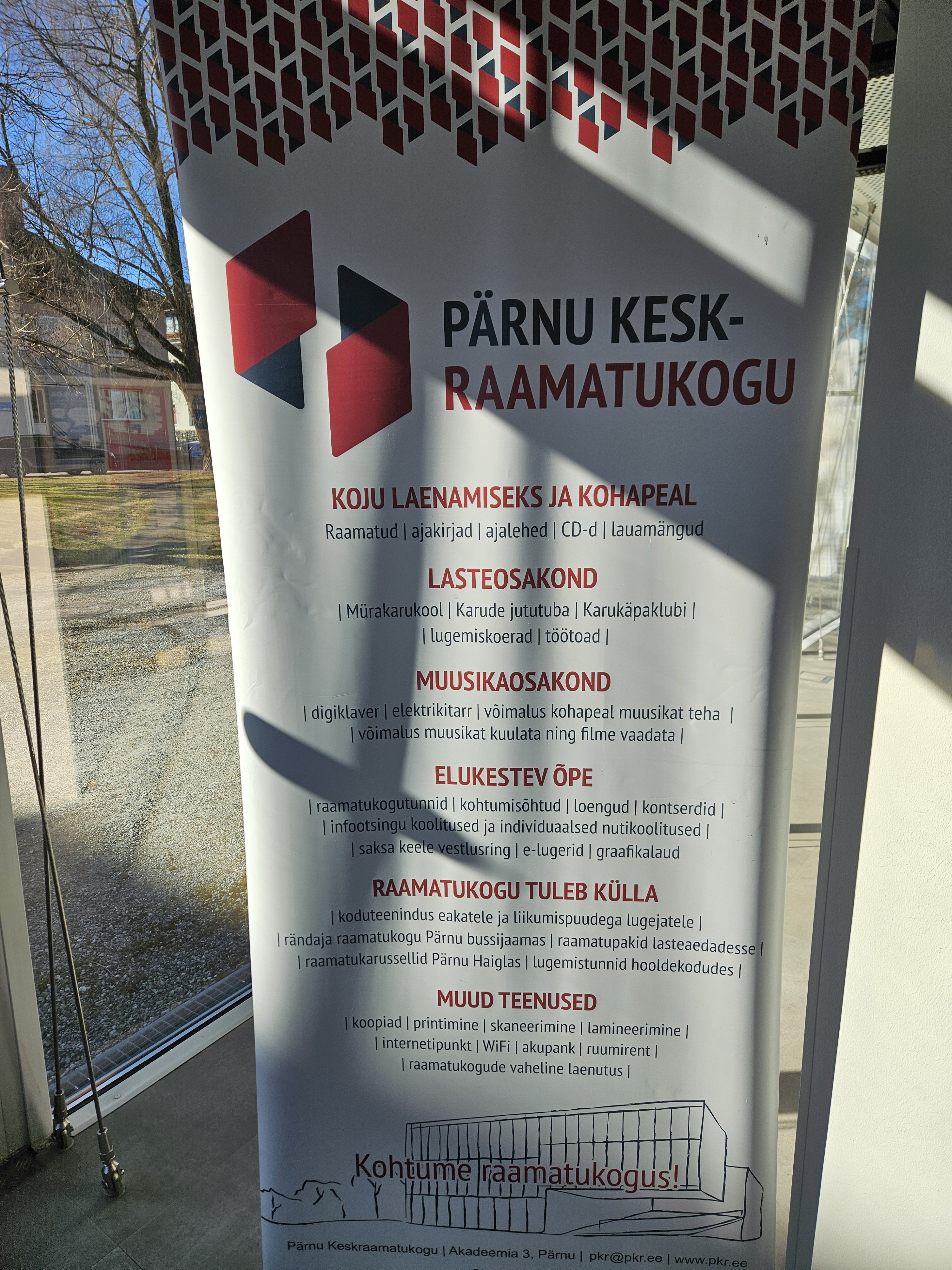 24. märtsil külastasid 2. klassid ning 2. aprillil 3. klassid Pärnu Keskraamatukogu, kus õpilastele tutvustati erinevaid osakondi. Teabekirjanduse osakonnas saime teada, et sealt saab laenutada inforikkaid raamatuid referaatide kirjutamiseks. Muusikaosakonnas sai laulda ning mängida muusikat kehapillidel. Õpilaste jaoks oli üllatav avastus, et lisaks raamatutele saab raamatukogust laenutada ka lauamänge, muusikariistu ja CD-plaate.